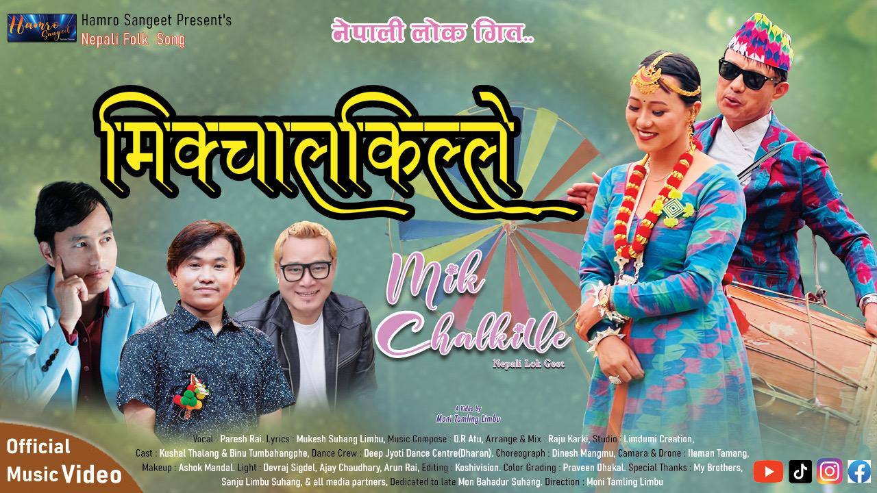 काठमाडौ, असार १७ – ‘मिक्चाल्किल्ले’ नाम म्युजिक भिडियो सार्वजनिक भएको छ । मंगलबार हाम्रो संगीत युटुब च्यानलमार्फत सार्वजनिक गरिएको हो । पुर्वको धनकुटा लगायत विभिन्न ठाउँमा छायाँकन गरिएको म्युजिक भिडियोलाई गायक तथा संगीतकार मनि ताम्लिङ्ले निर्देशन गरेका हुन । मुकेश सुहाङ्को शब्द, डिआर अटुको संगीत, परेश राइको स्वर, दिनेश माङमुको नृत्यनिर्देशन, हेमन योञ्जनको छायाँकन, प्रविन ढकालको कलर, मनि ताम्लिङ्को सम्पादनमा कुशल थलङ् र बिनु तुम्बाहाङ्फेको अभिनय रहेको छ ।