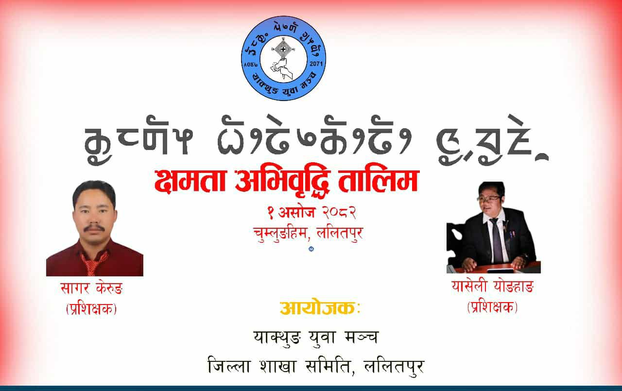 काठमान्डौ – एकदिने क्षमता अभिवृद्वि तालिम सम्पन्न भएको छ | बुधबार चुम्लुङहिम ललितपुरमा याक्थुङ युवा मञ्च जिल्ला कार्यसमिति ललितपुरको आयोजनामा सम्पन्न भएको हो | याक्थुङ युवाहरुलाई सबलीकरण गराउने उदेश्यले आयोजित तालिमलाइ यासेली योङहाङ र सागर केरुङले सहजीकरण गरेका थिए |