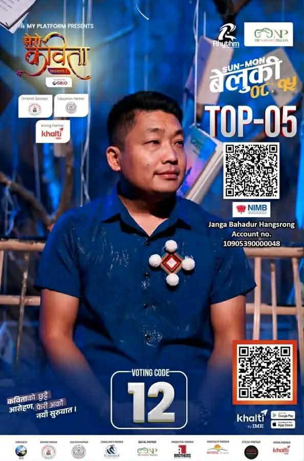 अबको चरणमा दर्शकको भोट निर्णायक हुने भएकाले कवि हाङ्स्रोङले सम्पूर्ण शुभेच्छुक, समर्थक तथा साहित्यप्रेमीहरूलाई आफूलाई भोट गरी सहयोग गरिदिन हार्दिक अपिल गरेका छन्।