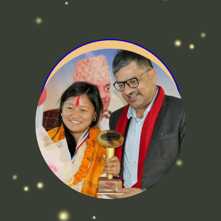 हिजो सम्पन्न स्कुलमा कविताको फाइनलमा आफ्ना नौ प्रतिष्पर्धीलाई उच्छिन्दै मादेनले सो उपाधी चुमेकी हुन् । यस्तै सो कार्यक्रममा उपविजेता, तृतीय र सान्त्वना क्रमशः युनिशा देउजा राजाबास इङ्लिस बोर्डिङ स्कुल, इनुष्का गौतम बराहाराइजिङ इङ्लिस स्कुल र प्रकृति यादव मोहन मा.वि बन्न सफल भए । स्वर्णिम साहित्य समाज, बराहक्षेत्र (३ सुनसरीद्वारा आयोजना हुने सो कार्यक्रम विगत ३ वर्षदेखि निरन्तर रुपमा आयोजना हुँदै आएको छ । सुप्रसिद्ध साहित्यकारर मदन पुरस्कार विजेता डा. नवराज लम्सालको प्रमुख आतिथ्यमा सम्पन्न कार्यक्रममा स्वर्णिम साहित्य समाजले आफ्ना विविध कविता प्रतियोगितामा पुरस्कृत कविहरुलाई सम्मानसमेत गरेको छ । पुर्वेली साहित्यिक मञ्चद्वारा आयोजित कोसी प्रदेशस्तरीय कविता प्रतियोगितामा पुरस्कृत मिलन नायक र कवि विमल स्मृति राष्ट्रिय कविता महोत्सव (२०८२ मा पुरस्कृत कवि दीपा मग्रातीलाई दोसल्ला ओढाउदै सम्मानपत्र र नगदसहित सम्मान गरेको हो ।